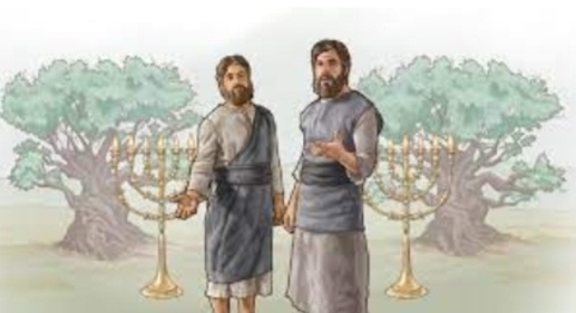 3 Sprawię też, że dwaj moi świadkowie, odziani we włosiennice, będą prorokować przez tysiąc dwieście sześćdziesiąt dni. 4 Ci świadkowie to dwa drzewa oliwne i dwa świeczniki, które stoją przed Panem ziemi. 5 Jeśli ktoś zechce im szkodzić, zostanie pochłonięty przez ogień, który wychodzi z ich ust i pożera wrogów — każdy, kto chciałby im szkodzić, musi zginąć właśnie w ten sposób. 6 Są oni władni zamknąć niebo, tak by nie padał deszcz za dni ich prorokowania. Mają też władzę nad wodami, aby zamieniać je w krew, i — ilekroć zechcą — uderzać ziemię różnymi klęskami.