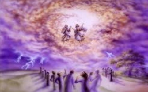 Obj.11:11 Jednakże gdy minie trzy i pół dnia, wstąpi w nich pochodzący od Boga duch życia i znów staną na nogi. Na tych, którzy to zobaczą, padnie wielki strach. 12 Oni natomiast usłyszą donośny głos z nieba: Wstąpcie tutaj! I wstąpią do nieba w obłoku. Ich wrogowie będą na to patrzeć.