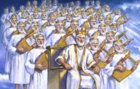 Podobnie jak w rozdziale 11, dwudziestu czterech starszych pada na twarz i woła: „Alleluja!”.