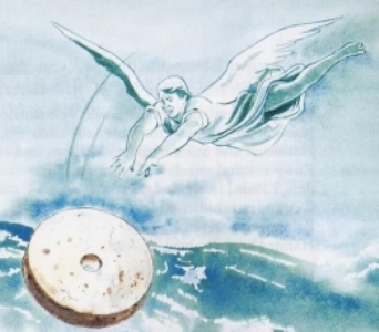 I silny anioł podniósł kamień podobny do wielkiego kamienia młyńskiego i rzucił go do morza, mówiąc: Tak zostanie zburzone Babilon, wielkie miasto, i nigdy więcej nie będzie znalezione.