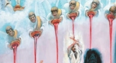 Obj.14:18 Dalszy anioł wyszedł od strony ołtarza. Ten miał władzę nad ogniem. Zawołał on do anioła z ostrym sierpem: Zapuść swój ostry sierp! Obetnij kiście winogron z winorośli ziemi, gdyż jej grona dojrzały. 19 Wówczas zapuścił swój sierp na ziemię. Poobcinał jej winogrona i wrzucił do wielkiej tłoczni Bożego gniewu. 20 Tłocznię umieszczono na zewnątrz miasta. Gdy zaczęto w niej tłoczyć, popłynęła krew. Rozlała się ona na wysokość końskich wędzideł i na przestrzeni tysiąca sześciuset stadiów.