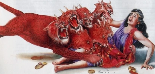 Następnie bestia ta zniszczy zarówno prawdziwych chrześcijan (przedstawionych jako dwaj świadkowie), jak i samą nierządnicę.