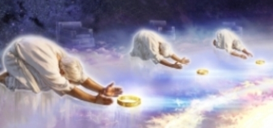 Podobnie jak w rozdziale 11, dwudziestu czterech starszych pada na twarz i woła: „Alleluja!”.